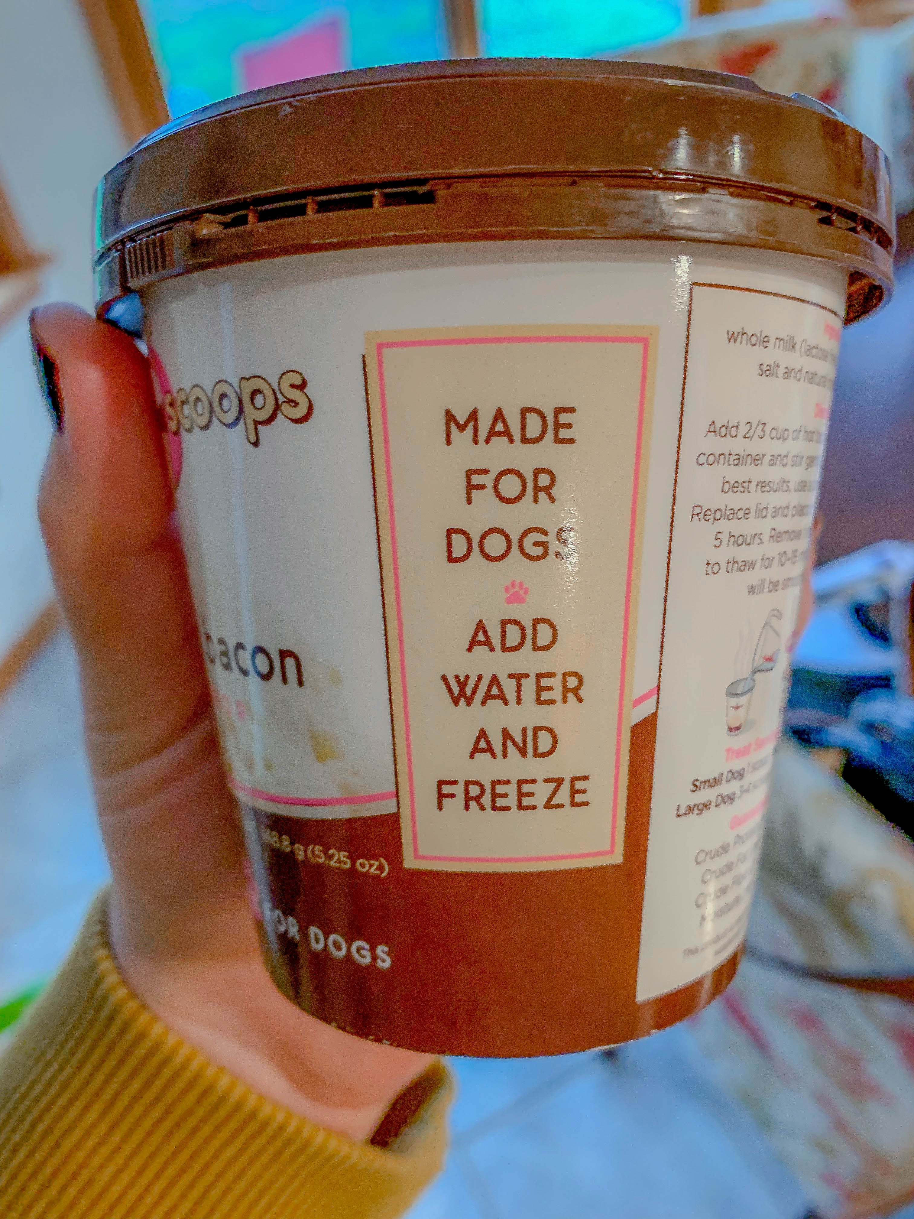 We saved the best two gifts for today though. The bark box and the puppy ice cream. The ice cream comes as a powdered mix that you add water to, then freeze. Super easy and doggies LOVE this stuff. Just make sure your spouse knows that it’s in the freezer next to the Halo top, or else you’ll go to get it out, and find it has a bite taken out of it… ahem. That didn’t happen here, just sayin!