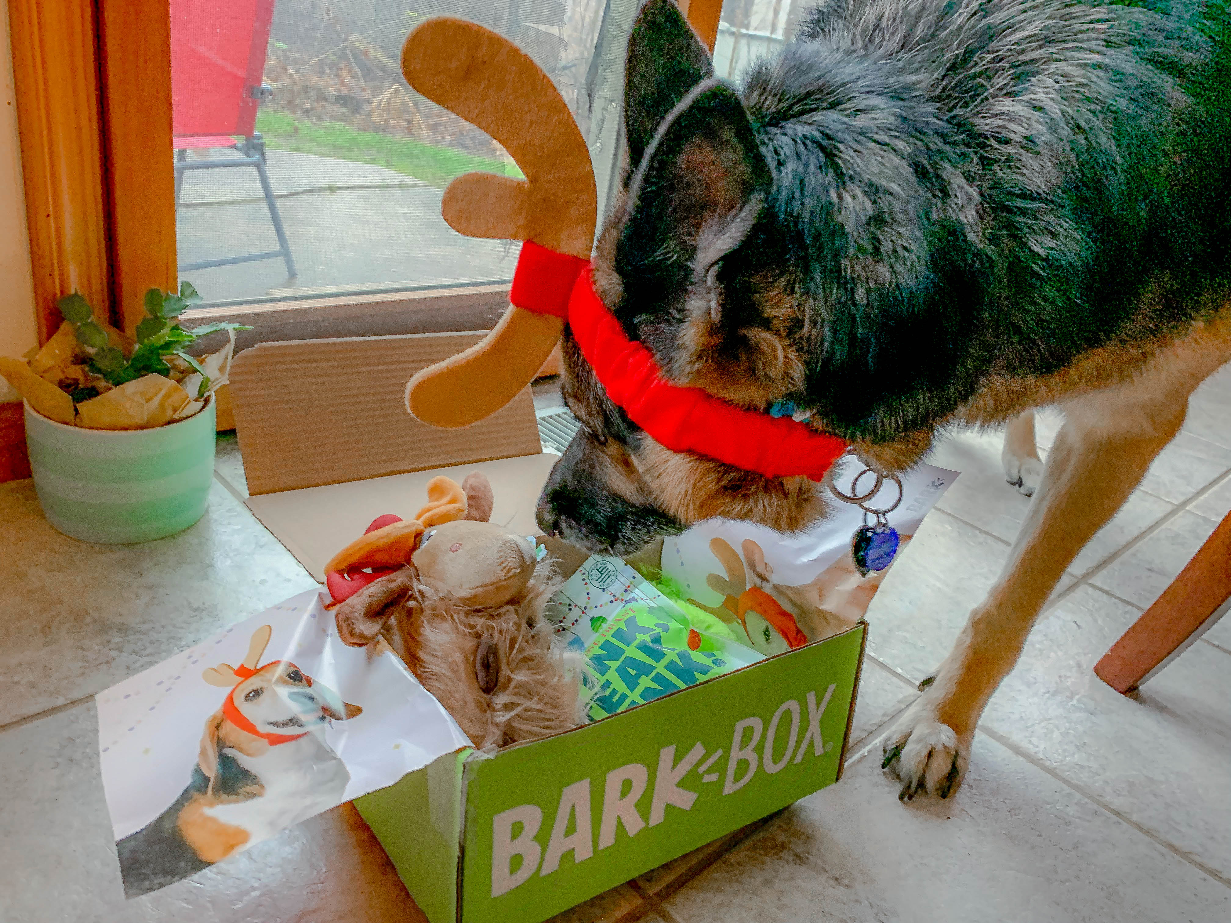 As an added bonus, if you’d like to check out Bark Box yourself, click on any of the Bark Box links in this post and order one for your puppy! If you use our link, a box will be given to a shelter dog to spread the joy around! Our goal is to donate 9 boxes this year, in honor of our girl’s 9th birthday! Click HERE to get started and help us reach our donation goal! The box also comes with this antler in case you want to really peeve off your pet. Enjoy.